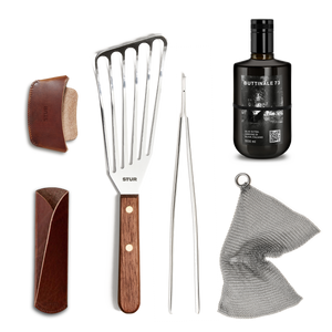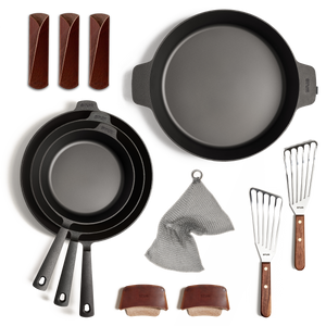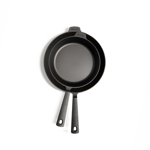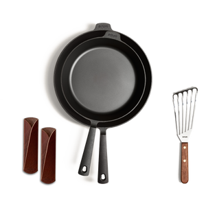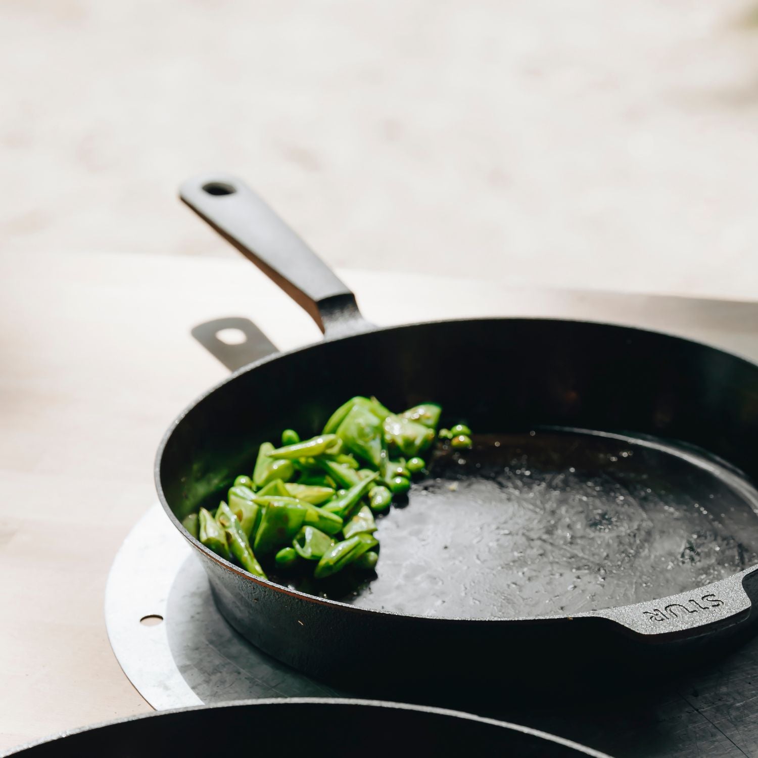 Wenn du auf Nummer sicher gehen willst und vielleicht eh davon genervt bist, dass deine Teflonpfannen ständig zerkratzen, gibt es eine gute Alternative: die Gusseisenpfanne. Dank der Patina haftet an ihr nichts an, und sie gibt auch bei hohen Temperaturen keine giftigen Gase ab.
