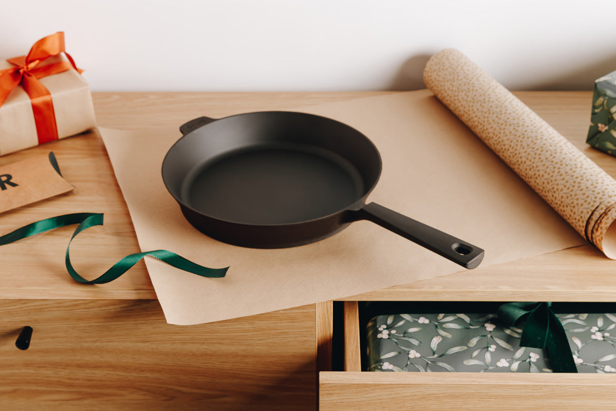 Gefertigt aus einem Material, das extrem langlebig ist: unsere Pfanne besteht aus einem Stück Gusseisen, das wir mit höchster Präzision gießen und glatt drehen.